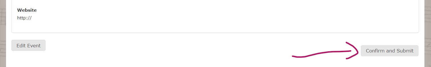 You have successfully entered your event, and it will be sent to the website admin for approval. You will receive an email confirmation when it is approved. Please