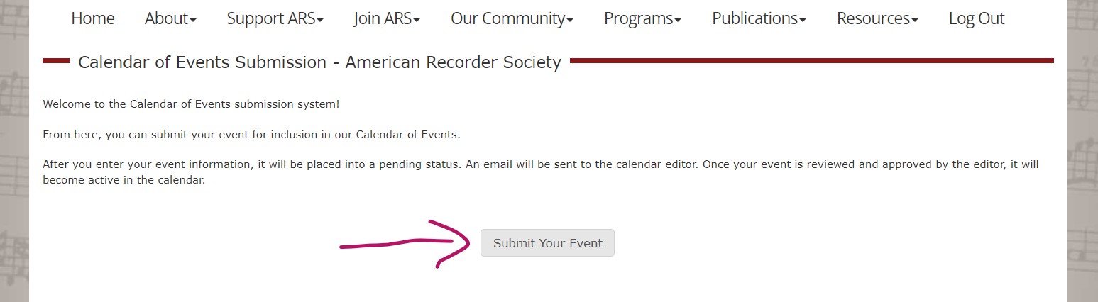 Members are encouraged to add their recorder-related events to the ARS calendar. Here's how: