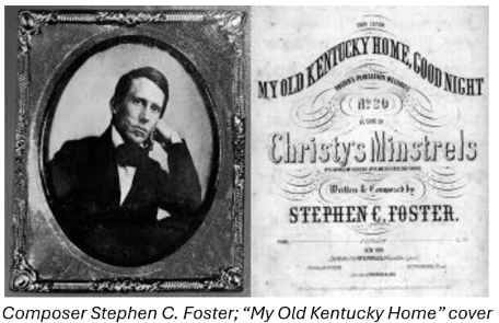 [6] and several Foster songs are in Black dialect. Paradoxically, one of Foster’s best known songs—“My Old Kentucky Home”—was apparently inspired by Harriet Beecher Stowe’s abolitionist novel