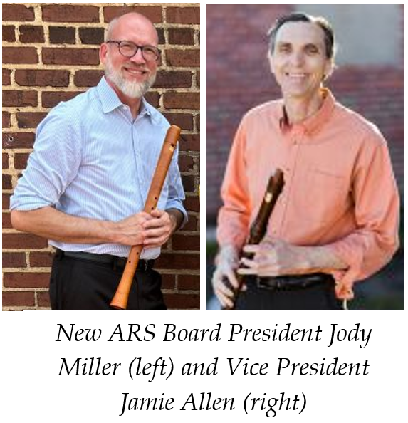 This was Carol Mishler’s last meeting as ARS President, and the Board issued a resolution to thank her for her skillful leadership. ARS will remain in good hands with Jody Miller as the new President and Jamie Allen as the new Vice President. The meeting ended with a brainstorming session on ways to grow the recorder player community.